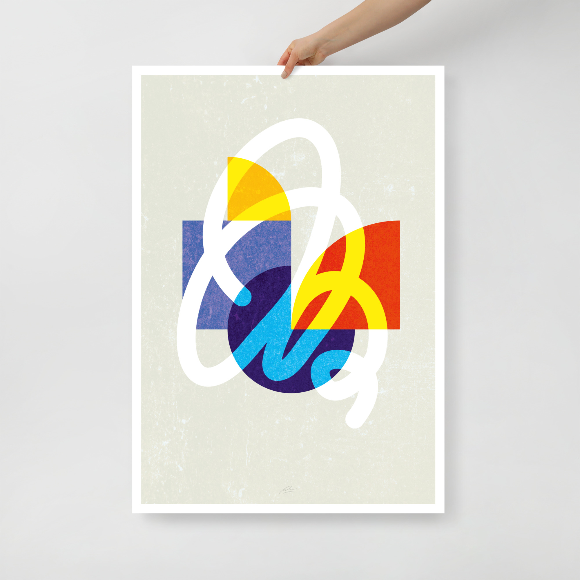 Interplay of Structure and Freedom: this work combines tight geometric shapes in the characteristic Bauhaus colors with a flowing, organic composition of lines. The result is a captivating blend of order and freedom, in which the rigid shapes harmoniously come together with the spontaneous, free lines. A celebration of the power of contrast and creative expression.